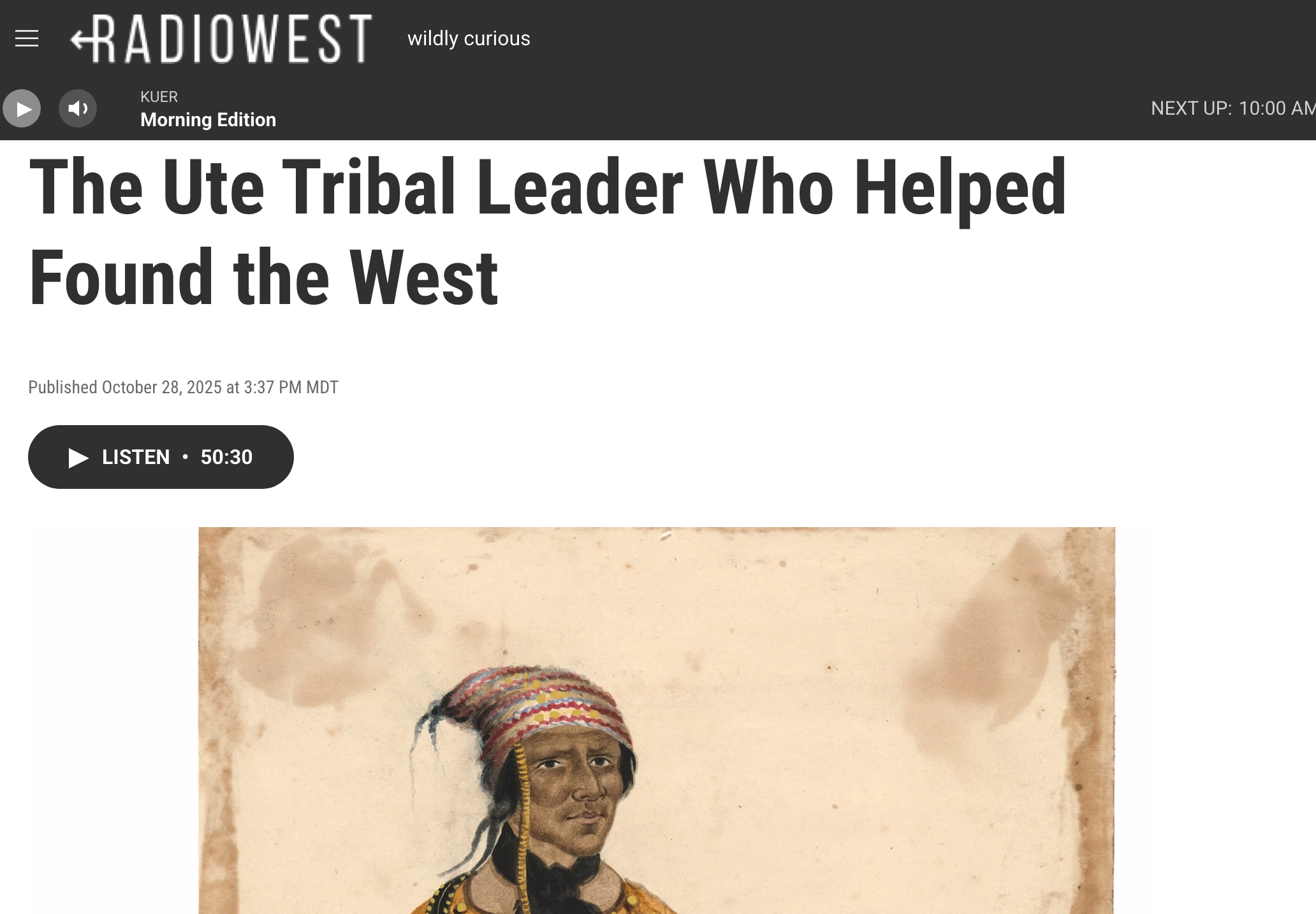 I had the great pleasure of talking about Wakara's America on Radio West with Doug Fabrizio! The studios for KUER are on Wakara Way (or near them?).